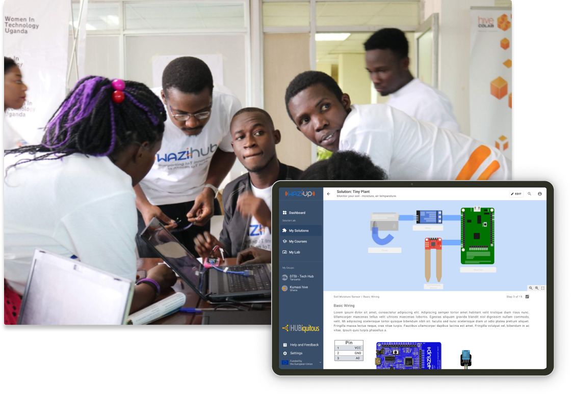 The WaziLab is a platform for learning and teaching IoT through live prototyping. It simplifies the prototyping process for startups through better hardware accessibility, guided prototyping, IoT capacity building and initial business support for startups. It features: